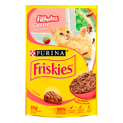 Racao Gato Umida Filhote Friskies 85g Carne Ao Molho